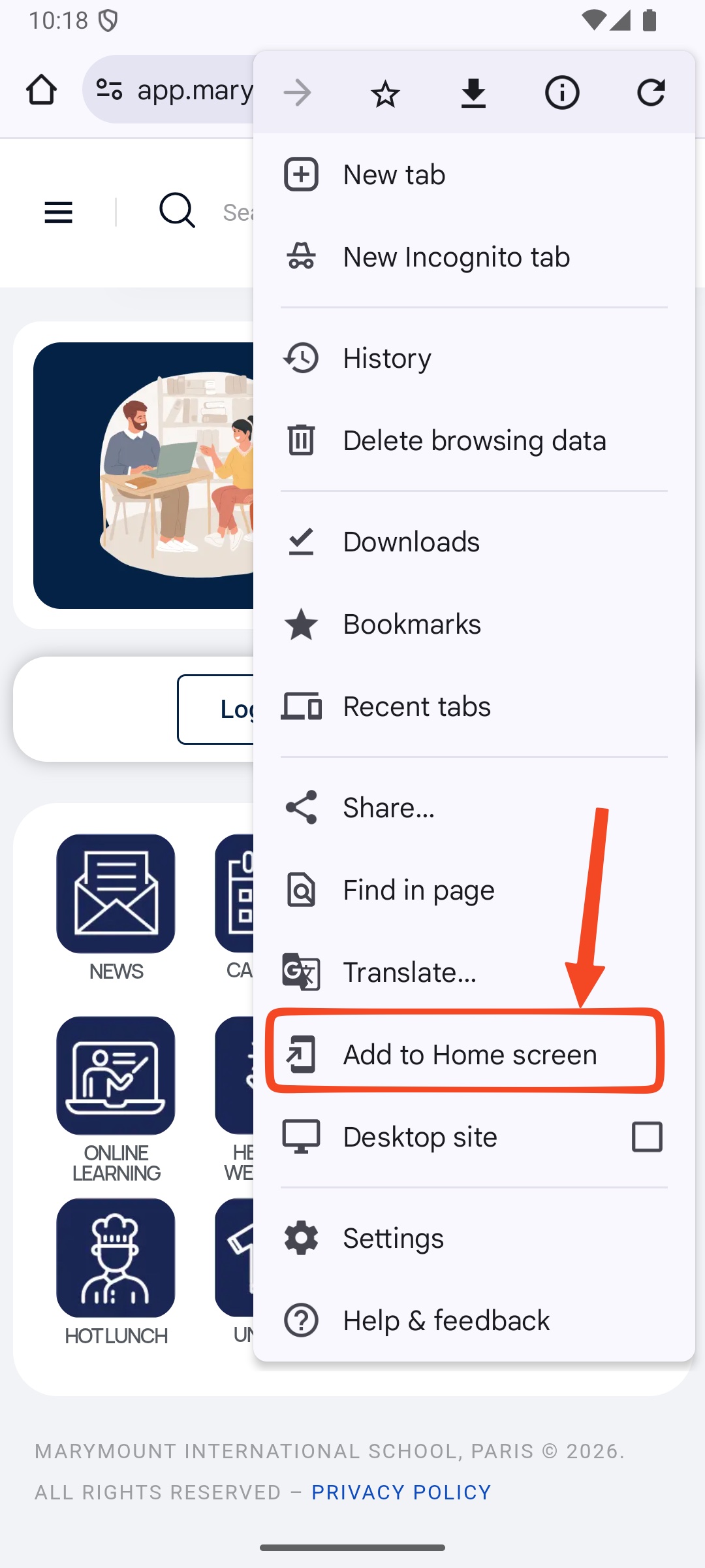 Select "Add to Home Screen"